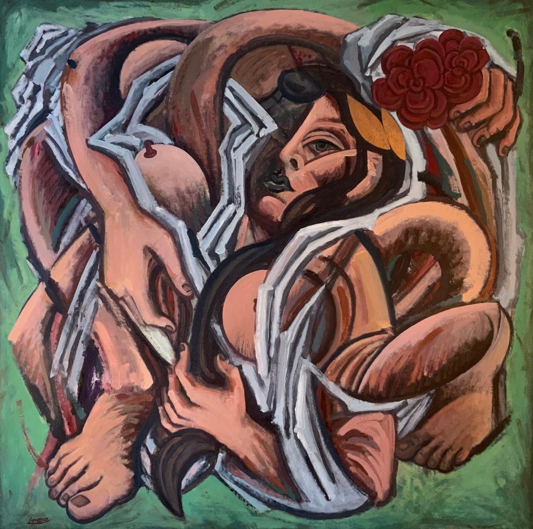 “My work explores the notion of the human being. Through my portraits or through my figures, I deal with the subject of the human being, working from realism to suggestive decompositions and representations. I represent men and women, together or separately with an unlimited knowledge of the documentation of the human. I show them both with a look that goes from the depth, essential and intimate of the individual to a broader perspective of the human race. My portraits show that my passion for painting revolves around, not only my interest in the human figure, but more specifically the individual. My pictorial construction is in its own space between cubism, futurism, surrealism or expressionism”.