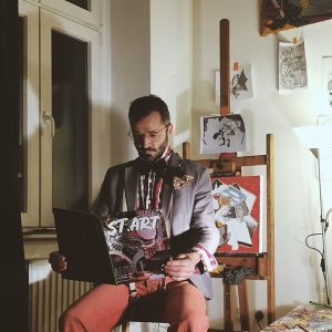 Alfredo Laporta was born in Barcelona in 1974 where he studied painting and illustration at the Massana and Llotja schools respectively. Years later he traveled to Basel with thecommission to carry out the murals and trompe l’oeil for the entire interior of the Drachen hotel. After four months in the Swiss city, Alfredo Laporta settled in Paris where he lived for three and a half years. There he made contact with the world of Parisian art and further developed my personal work. Alfredo Laporta returned to Barcelona where he stayed for eight years until in 2012 he traveled and settled in Berlin where he currently lives and where in 2016 he finished and presented the film “Auf dem Weg”. In 2019, the French government ommissioned he to carry out the him frescoes for the church “L’Annunciata” by Pianottoli in Corsica, France, where I painted its 31 m2 in the 21st century.